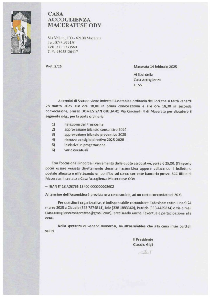 Consulta qui lo Statuto della Casa Accoglienza Maceratese ODV